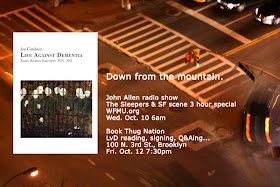 I return to John Allen’s WFMU show on Wednesday. Last time we did a five-hour history of L.A. punk; this time we’ll do a three-hour San Francisco special focusing on The Sleepers, Negative Trend, Toiling Midgets, and Flipper. The show streams live on Wednesday Oct. 10 6am eastern, at "WFMU.org". Then on Friday Oct. 12 7:30pm I'll be at "Book Thug Nation" 100 N. Third Ave, Brooklyn to read from my new book, Life Against Dementia, and answer questions about my old books and older record labels.